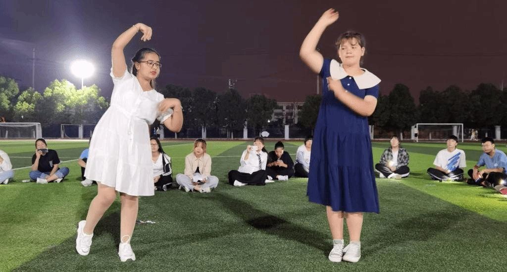 海上生明月,天涯共此时。在广阔夜空下,同学们围坐成心形,主持人用深情真挚的语言宣布了晚会的正式开始。