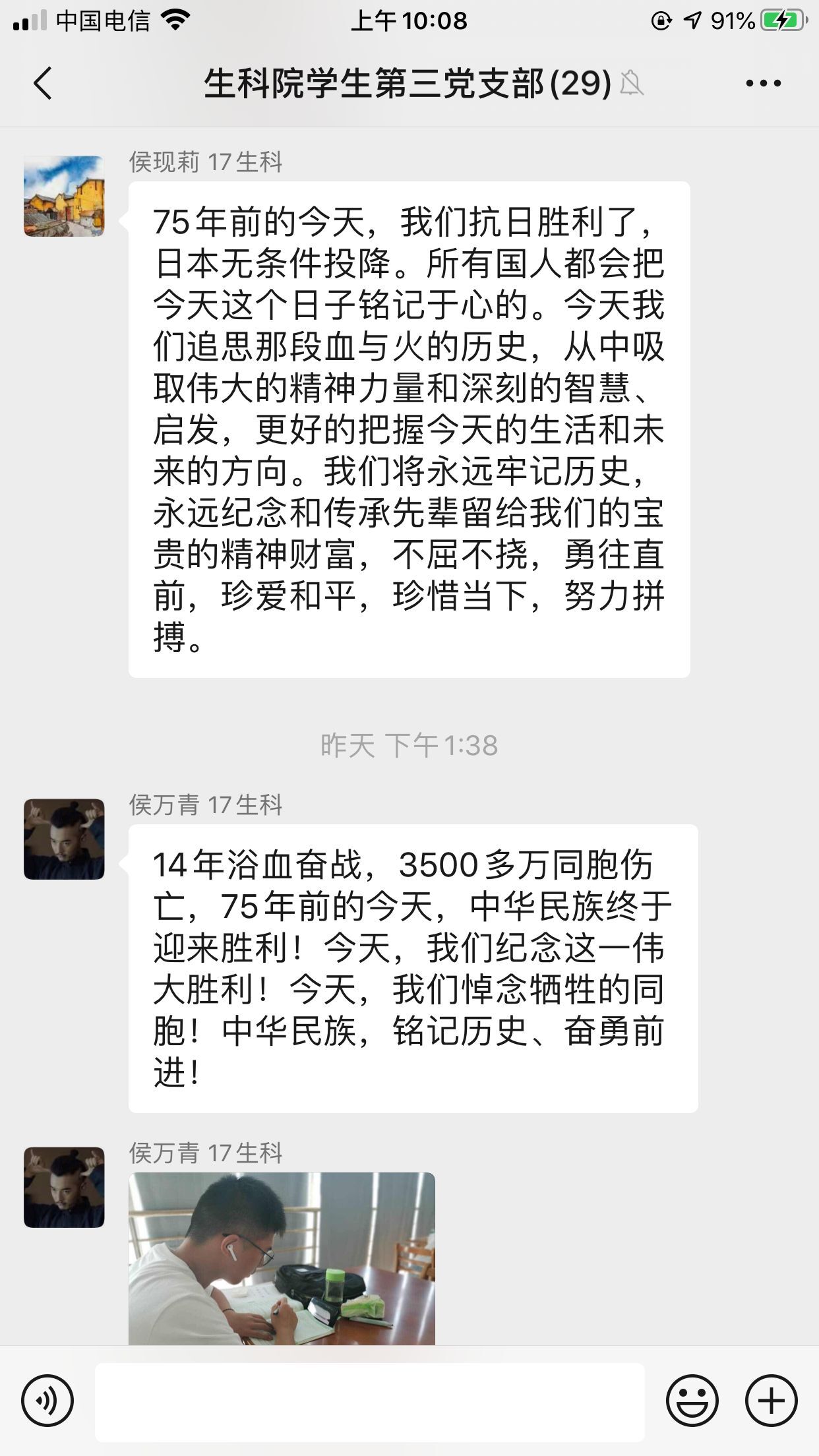 生科院学生第三党支部组织观看纪念中国人民抗日战争暨世界反法西斯战争胜利75周年纪念活动