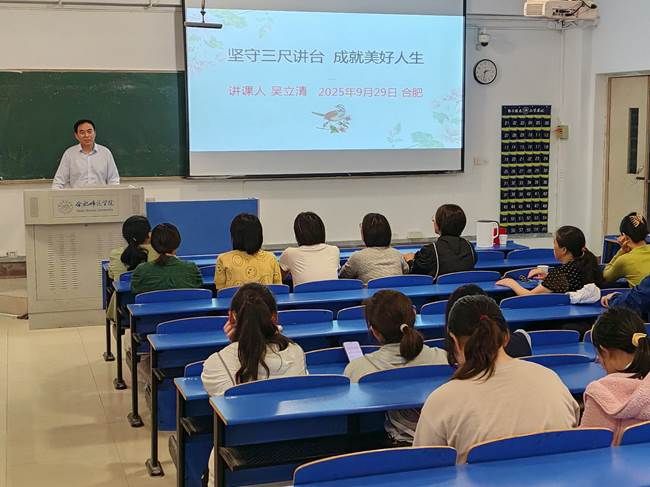 为庆祝建校70周年,2025年9月29日下午,beat365在线唯一官网beat365在线唯一官网在锦绣校区逸夫楼109教室举办了一场题为“坚守三尺讲台 成就美好人生”的专题讲座。本次讲座特邀宿州市第二中学生物特级教师、正高级教师、安徽省“江淮学科名师”、享受省政府特殊津贴专家、我院1997届优秀校友吴立清担任主讲。讲座由科研处与beat365在线唯一官网联合主办,吸引了众多师生到场聆听。