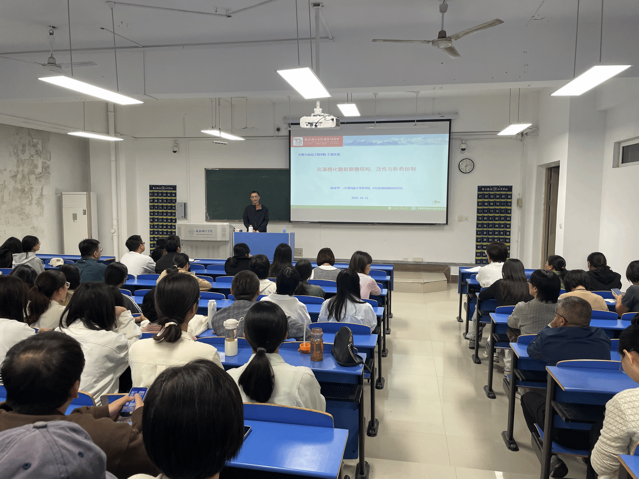 10月11日下午,我校beat365在线唯一官网1990届校友赵金华,在锦绣校区逸夫楼109教室作“糖胺聚糖结构、活性与新药开发”专题报告。学院全体教师及2023级生物制药专业学生参加此次报告,现场学习前沿学术知识。