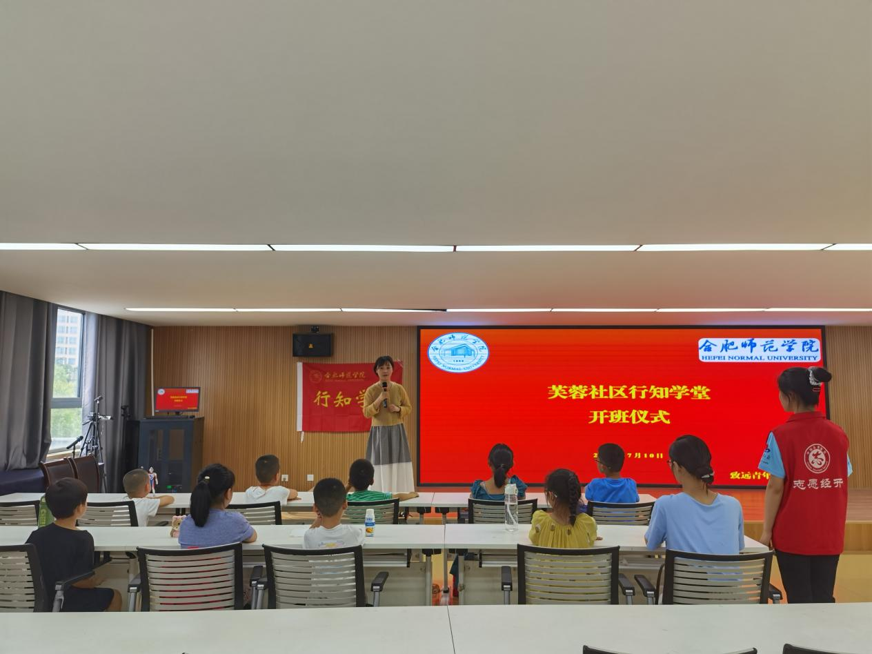 本网讯 弘扬行知文化,践行行知精神,绽放青春风采。7月10日,beat365在线唯一官网牵头举办的芙蓉社区行知学堂在合肥市蜀山区芙蓉社区党群服务中心正式开班。学堂指导教师王玲玲、8名“小先生”、全体小学员及家长共同参加开班仪式。