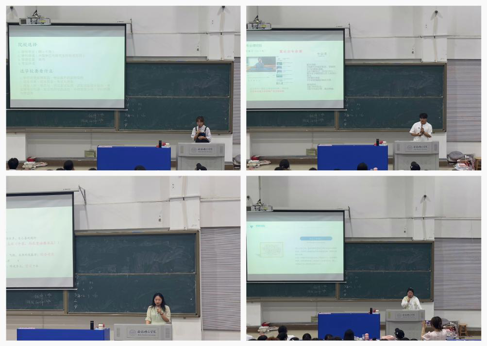此次分享会分别邀请了2019级白涵、张玲玲、孙康龙、李小兵、田敏力五位学长学姐进行考研经验分享,他们今年分别考取郑州大学、安徽农业大学、合肥工业大学、上海大学及天津科技大学。