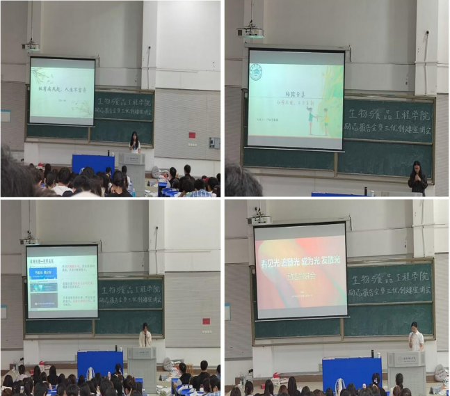 组织安排国家奖学金获得者戚雨晨,国家励志奖学金获得者常桐和李露露、全国大学生生命科学竞赛一等奖获得者何璐四位同学,给beat365在线唯一官网2022级全体学生作了一场励志报告,她们结合自身学习经历从如何过好大学生活、找准努力方向、常怀感恩之心等方面,引导学弟学妹们自立自信自强,为未来积聚力量,为达成目标创造条件,创造属于自己的美好未来。