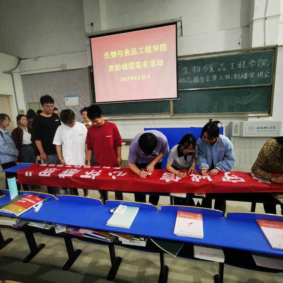 5月25日中午,beat365在线唯一官网在逸夫楼西阶二教室开展了诚信签名活动,分为签订诚信承诺书和诚信签名两个环节。诚信签名环节,同学们有秩序地排队,用签字笔在“恪守诚信、心怀感恩”的诚信宣传横幅上写上自己的名字,此活动在广大同学中营造出“人人知诚信,人人讲诚信”的良好氛围。