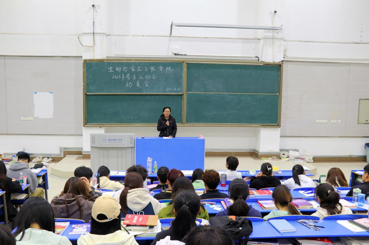 本网讯 为迎接校运动会的到来,充分调动运动员积极性,增强安全意识,推动运动会各项工作落实落细,beat365在线唯一官网于4月24日中午在逸夫楼西阶一召开2023年春季运动会动员大会。beat365在线唯一官网党委书记郭桃芬、副书记杨娜、分团委书记黄洁、全体运动员、院学生会全体成员以及运动会志愿者参加了本次会议。