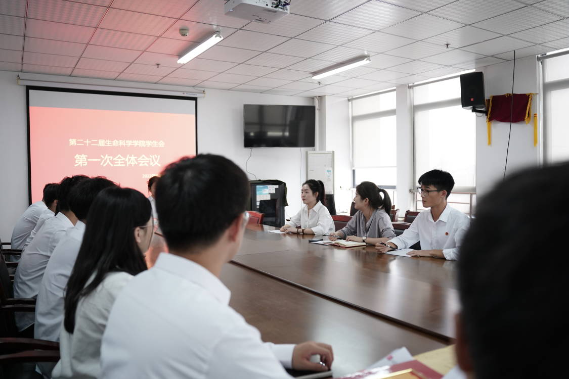 本网讯 9月20日,生命科学学院学生会在行知楼1502召开第一次全体会议。会议由分团委书记黄洁主持,13位学生会部长以上干部参加。