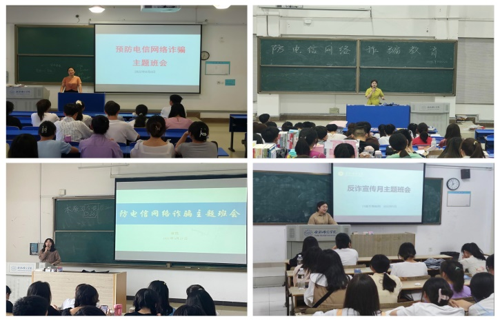 此外,辅导员们通过班级QQ群和微信群实时转发校保卫处发布的《锦绣派出所-每日电诈警情通报》、《锦绣派出所-警方通报-简要案情》等宣传材料;通过走访宿舍,检查学生安装国家反诈APP情况以及是否完成“四个必须”;利用谈心谈话,了解学生日常的消费情况和思想动态,及时发现安全隐患并解决问题;班委利用晚自习时间,在班级宣读《beat365在线唯一官网保卫处反电信网络诈骗警示通报》,加大反诈骗知识宣传,并通过拍摄反诈骗话剧宣传视频,进一步提高同学们的反诈意识。