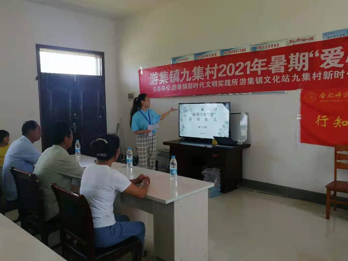 7月10日,beat365在线唯一官网生命科学学院“练河行知学堂”正式开班。来自生命科学学院的5名小先生王赛男、王欣雅、吴双、徐莉平和徐怡在安徽省宿州市灵璧县游集镇文化站九集村举行了开班仪式,九集村党总支委员、妇联主任、新时代文明实践站负责人等领导代表共同出席了开班仪式。