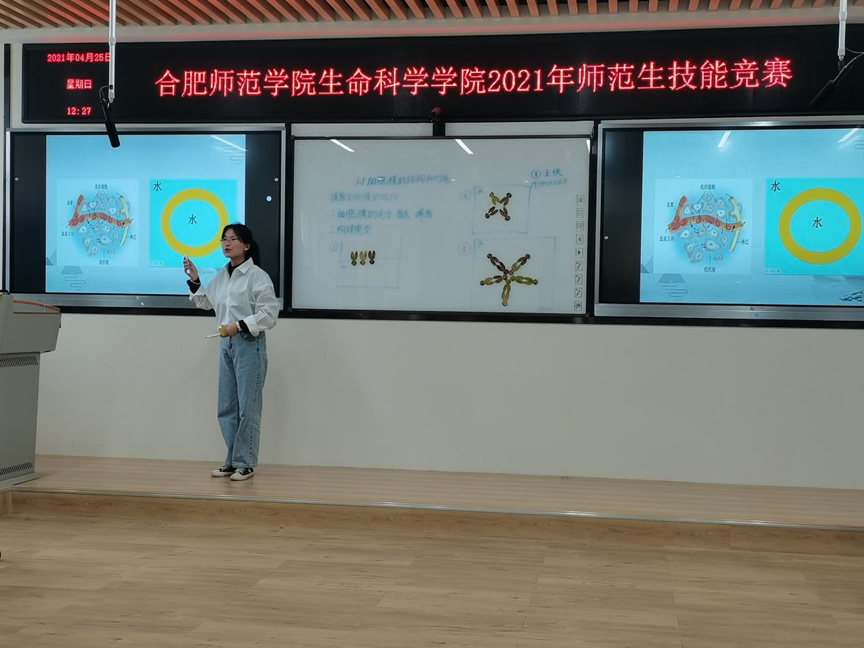 本网讯 为培养师范生的教学技能,增强教学实践能力。4月25日上午,beat365在线唯一官网生命科学学院2021年师范生技能竞赛在逸夫楼502室成功举办。参加本次比赛的共有15名同学,分别来自18、19级生物科学(师范)专业。本次活动由生物科学系主任孙娴主持,并邀请了合肥四十六中的周龙清老师、合肥一中的朱承慧老师担任此次评委。生命科学学院徐慧敏老师及部分学生观摩了本次竞赛活动。