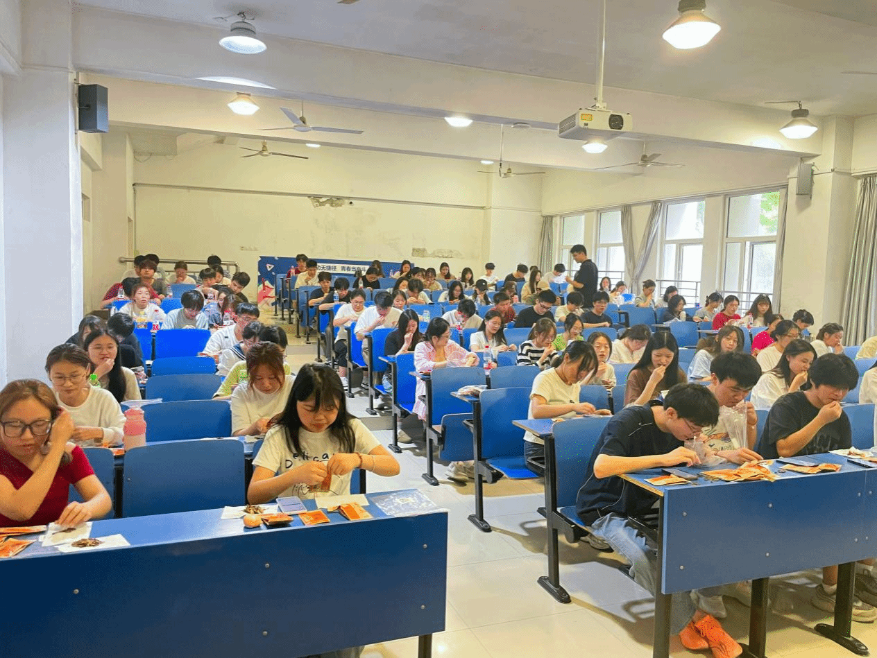 活动现场,洽洽食品带来了多款尚未上市的新品,涵盖坚果、烘焙、休闲零食等多个品类。师生们从食品风味、口感、包装设计等维度进行品鉴,并结合食品科学与营养学知识提出优化建议。同学们的反馈既展现了专业素养,也为企业提供了宝贵的市场洞察。