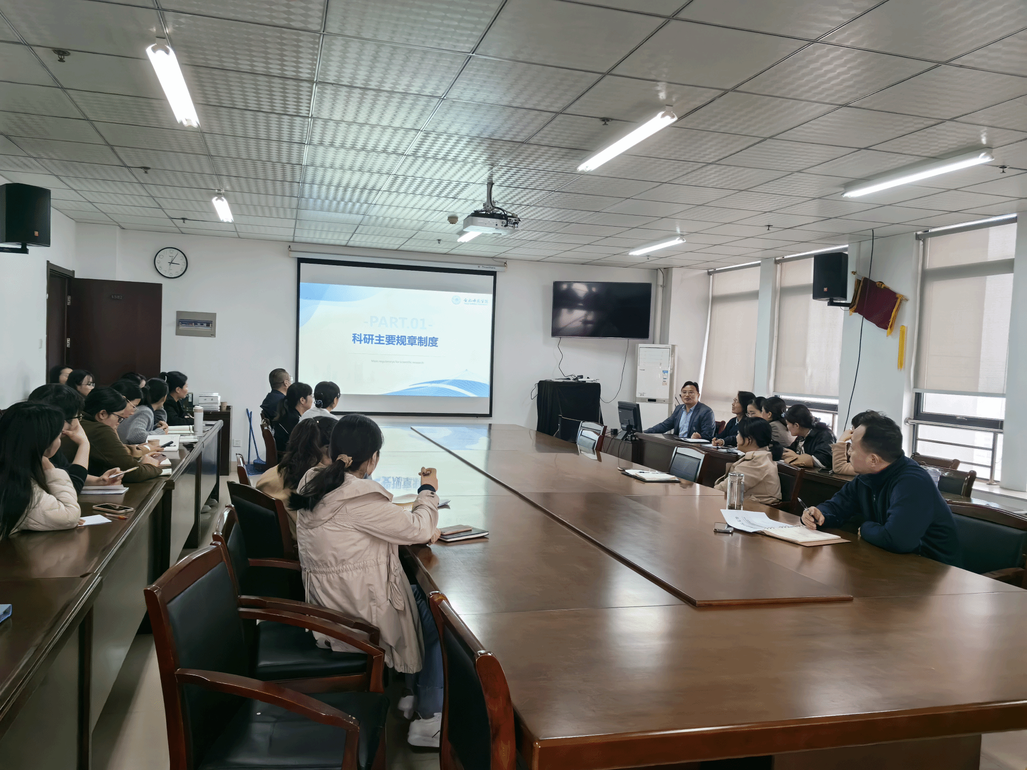 吕建国教授详细解读了学校科研管理的主要规章制度,结合学校实际对《beat365在线唯一官网预防与处理学术不端行为实施细则》《beat365在线唯一官网科研促进教学实施办法》《beat365在线唯一官网横向科研项目及经费管理办法(试行)》等作了详细说明,对文件中需注意的问题加以提醒;并结合科研管理项目、成果、奖项“三件套”理念,强调从项目要成果,由成果出奖项,注意改变重立项轻建设的现状。提出纵向与横向项目一体双翼、齐头并进的发展思路。鼓励学院营造科研氛围、凝练研究方向、打造学科科研团队。最后系统介绍了2024年度学校的科研工作计划。