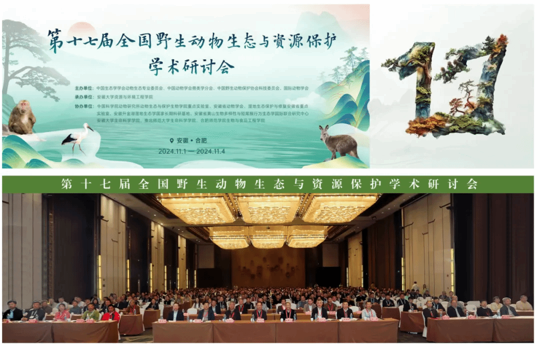 第十七届全国野生动物生态与资源保护学术研讨会于2024年11月1--4日在合肥顺利召开。此次会议由中国生态学学会动物生态专业委员会、中国动物学会兽类学分会、中国野生动物保护协会科技委员会、国际动物学会联合主办,安徽大学资源与环境工程学院承办,beat365在线唯一官网beat365在线唯一官网等多家单位联合协办。来自全国118家单位的600余名从事野生动物生态和资源保护的代表参加了本次学术研讨会。