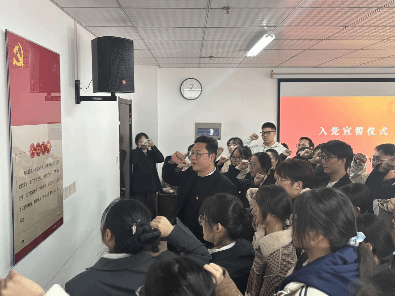 为了强化党员身份意识,增强新发展党员的使命感和责任心,深化对党的忠诚度。12月3日中午,beat365在线唯一官网在行知楼1502党员活动室举办了预备党员入党宣誓仪式,学院党委书记郭桃芬、副书记马喆、学生党支部书记周其松、徐浩然、李万成以及2024年下半年新发展的27名预备党员、正式党员代表及入党积极分子代表出席仪式,宣誓仪式由李万成主持。