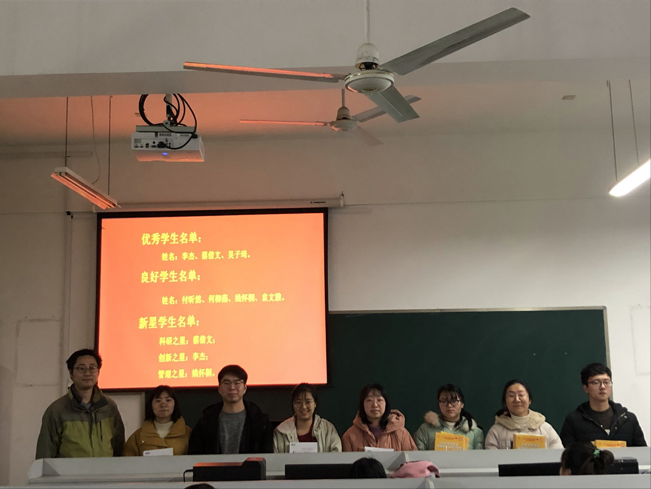 王占军针对3个小组的工作进行了点评,充分肯定了团队在2019年度取得的成绩,同时也指出存在的不足和需要改进的地方,并对2020年的工作计划进行了展望。根据小组汇报及学生平时表现情况,评选出年度优秀学生、良好学生及新星学生(科研之星、创新之星和管理之星),并对先进学生奖励了考研英语辅导资料。