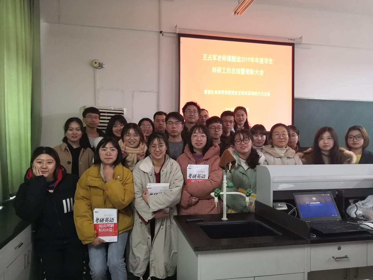 本网讯为全面推进学院“三全育人”综合改革试点任务,生命科学学院把促进学生成长作为一切工作的出发点,紧紧围绕立德树人根本任务,以培养担当民族复兴大任的时代新人为目标,全面推动全员育人、全过程育人、全方位育人。学院积极鼓励教师吸纳学生参与科学研究,组建科研团队。近日,在生命科学学院党总支的支持下,生命科学学院生物科学教工党支部书记王占军副教授,组织本科生科研团队召开2019年度科研工作总结暨表彰大会,王占军指导的2016、2017和2018级本科生共21人参加了本次活动。