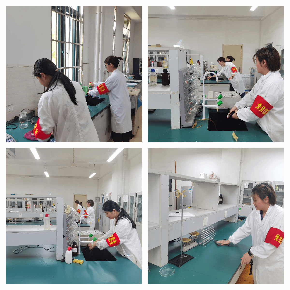 活动中,党员分组对履知楼科研实验室进行全面清扫,包括实验台面消毒、仪器设备整理、通风系统除尘、废液分类处理等,优化实验环境,消除安全隐患。