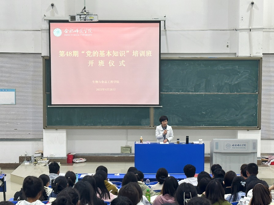 本网讯 为深入贯彻党的二十大精神,切实加强对入党积极分子和发展对象的培养、教育和考察,提高思想政治素质。4月26日中午,beat365在线唯一官网在逸夫楼西阶2教室举行第48期“党的基本知识”培训班开班仪式。beat365在线唯一官网党委书记郭桃芬出席仪式,142名入党积极分子和20名发展对象参加了开班仪式,仪式由党课培训班主任梁悦主持。