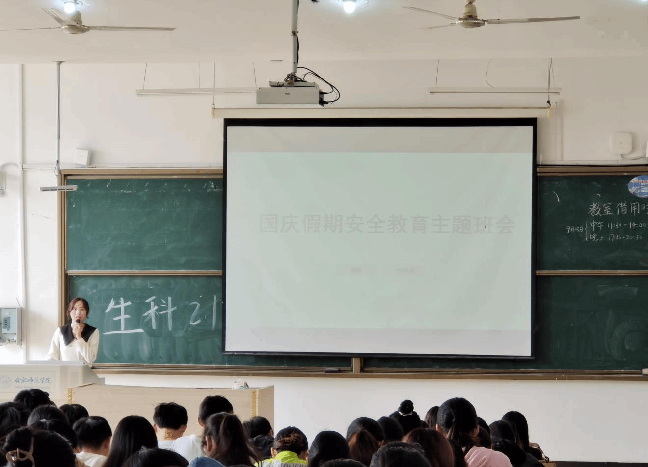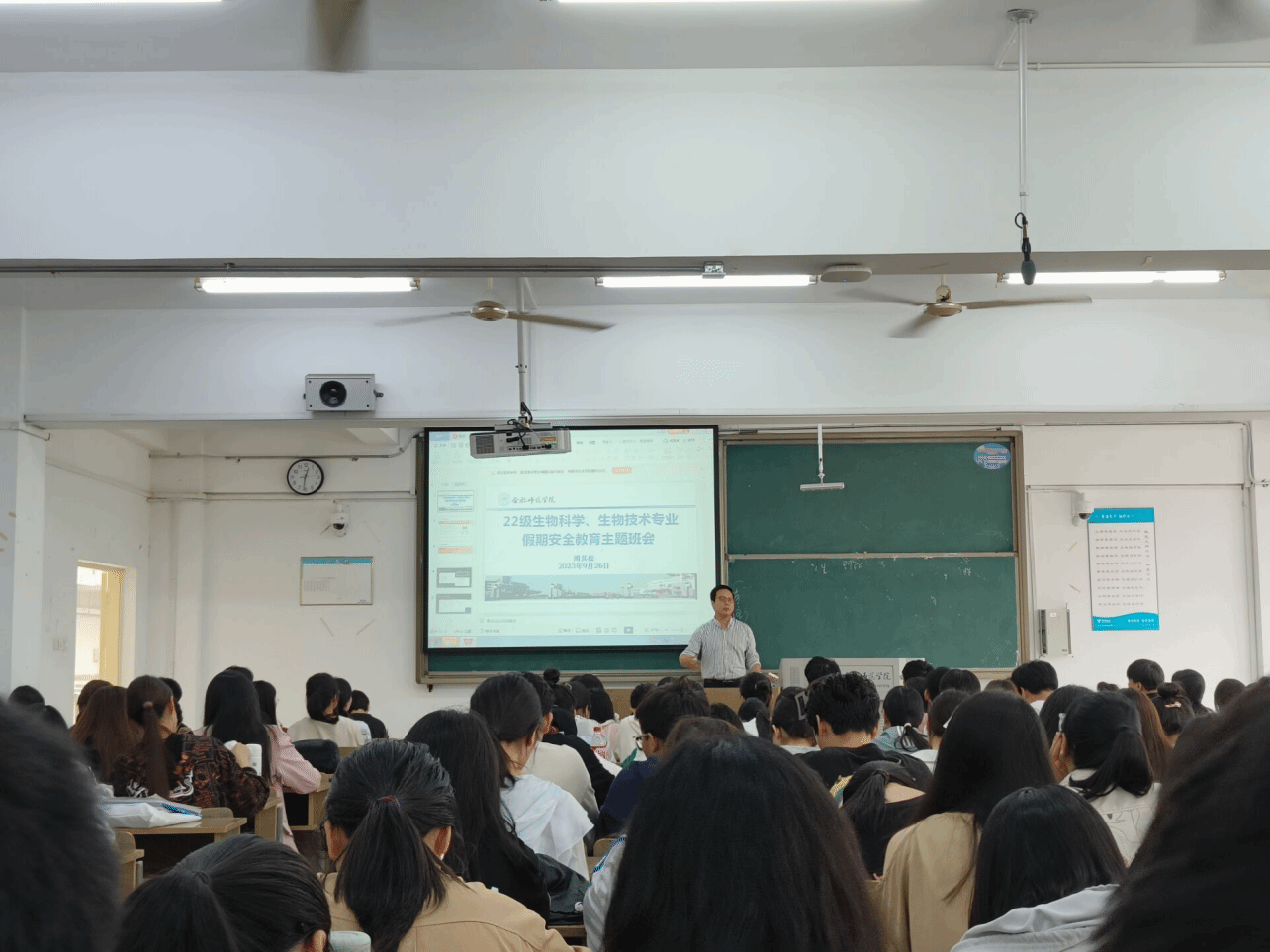 班会伊始,各班辅导员首先对双节假期的相关事宜进行了布置,说明了学校假期的整体安排,同时倡导同学们在放假期间要学会合理分配、利用假期时间,坚持学习,提升自我。辅导员老师分别从人身安全、交通安全、财产安全、饮食安全、电信安全、水电使用安全等方面对学生进行安全教育,希望全体学生的安全防范意识能够入脑入心入行。其中重点提醒同学们应该做到以下几点:一是高度重视宿舍安全,注意防火防盗,及时检查宿舍内有无安全隐患;二是切实加强假期离返校途中的出行安全,保护好个人的人身财产安全,平安到家后及时签到,返校后及时打卡;三是假期留校的同学要加强自我管理,树牢安全意识,校内外活动时注意安全,同时加强与辅导员老师沟通汇报,时刻把安全放在第一位。此外,辅导员老师们还结合安全主题,对同学开展了秋季传染病防治安全教育,重点讲解了肺结核病的预防知识,提醒同学们要加强个人防护,增加体质,注意个人卫生和宿舍卫生,勤打扫勤通风,时刻树立安全第一,健康第一的意识。