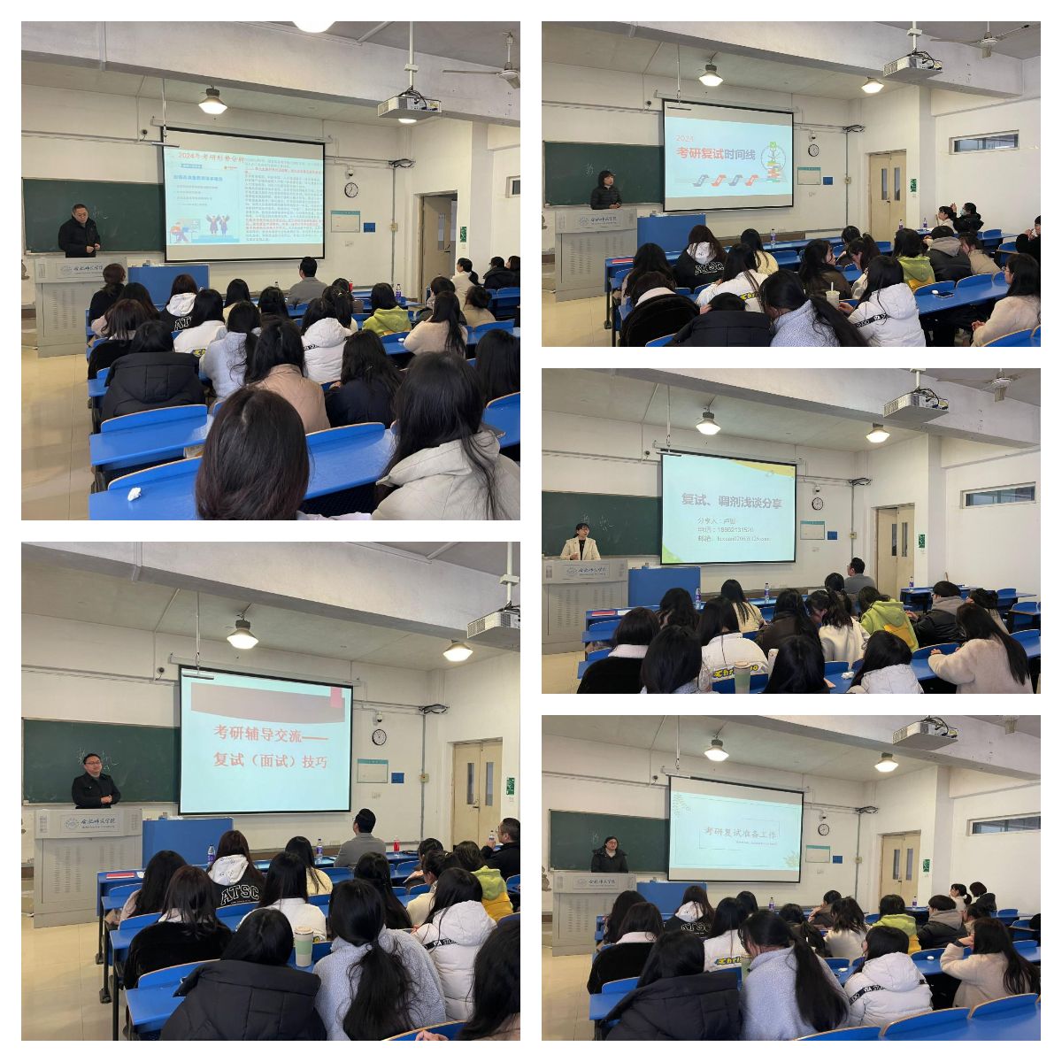 会上,陈金武等五位老师就近几年的考研形势、复试流程、复试技巧、简历制作、材料撰写等方面内容作了详细介绍,并提出了针对性指导意见。老师们表示,一是要全力以赴、尽早谋划,做好专业学习和科研实验经历的梳理,在充分了解目标导师研究方向的前提下,主动联系导师表达自己的想法和意愿。二是要提前熟悉了解复试流程和注意事项,有的放矢做好全面准备,保持积极的心态和坚定的信心,在复试过程中勇敢展示自己的优势,展现出良好的精神状态。三是要加强英语能力的训练,并及时关注各高校的调剂信息,为自己争取更多选择的机会。