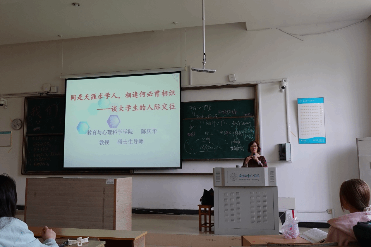 为进一步加强学院心理健康教育工作,普及心理健康知识,促进学生心理健康发展,为学生成长减压赋能,5月16日,beat365在线唯一官网在博约楼108教室开展了“心理大讲堂”活动。本次心理健康大讲堂主题为《同是天涯求学人,相逢何必曾相识》,教育与心理科学学院陈庆华教授主讲。