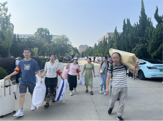 9月10日,beat365在线唯一官网迎来了一群怀揣梦想、朝气蓬勃的新同学。10日清晨7点,学院迎新工作全面启动。志愿者们早早等候在学校东门和北门两个接待点,以最饱满的热情迎接新生的到来。学院党政班子、辅导员坚守一线,与前来报到的新生和家长进行亲切交流,副书记马喆和党员教师欧祖兰、张方艳、周明辉三位教师主动放弃节假日休息,积极报名参加迎新工作,和学生党员干部一起积极参与到迎新志愿服务工作中,成为了校园一抹别样的风景,他们不辞劳苦地帮助新生们搬运行李,耐心细致地为新生和家长答疑解惑、有条不紊地引导新生办理报到手续,用亲切的态度和温暖的笑容热情服务,他们用自己的实际行动传递着温暖,也传递爱,充分发挥了党员干部的先锋模范和无私奉献精神。