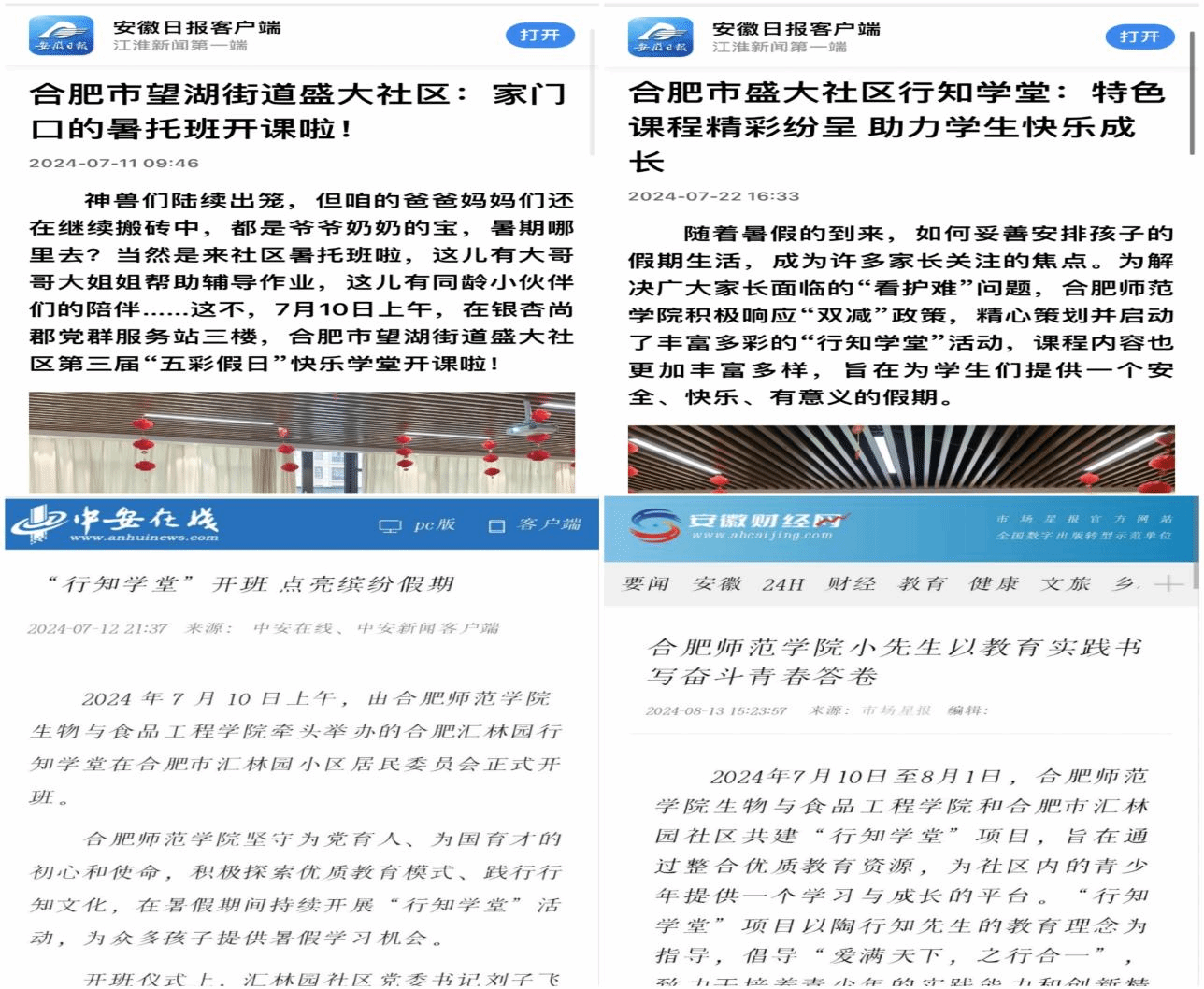 《中青校园》《大皖新闻》《安徽日报》等多家媒体报道beat365在线唯一官网行知学堂