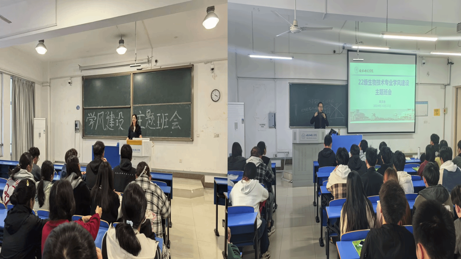 班会上,各年级辅导员向同学们强调了学风建设的重要性,总结了开学以来同学们在课堂纪律、学习状态等方面的表现,并围绕学好专业知识、培养良好学习习惯等方面分享了策略和方法。辅导员老师们鼓励同学们珍惜大学时光,相互帮助,努力学习,积极参与学术研究和科技创新活动,不断提升自己的综合素质和竞争力,为毕业就业及升学做好充分准备。