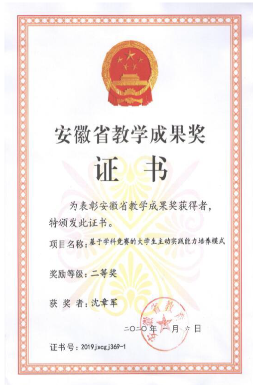 (4)以职业需求为导向,人才培养质量显著。本专业培养了一批综合素质高、实践能力强、发展后劲足的生物教学、研究和管理人才。近三年,生物科学专业学生获安徽省大学生标本制作大赛一等奖两项,获安徽省高等学校师范生教学技能竞赛二等奖2项,三等奖5项,获“田家炳杯”第八届全国师范院校师范生教学技能竞赛三等奖一项。学生在其他各类省级以上竞赛获奖共计32人次。本专业就业率稳定在96%以上,应届毕业生考取研究生的比例不断提高,毕业生受到用人单位一致好评。
