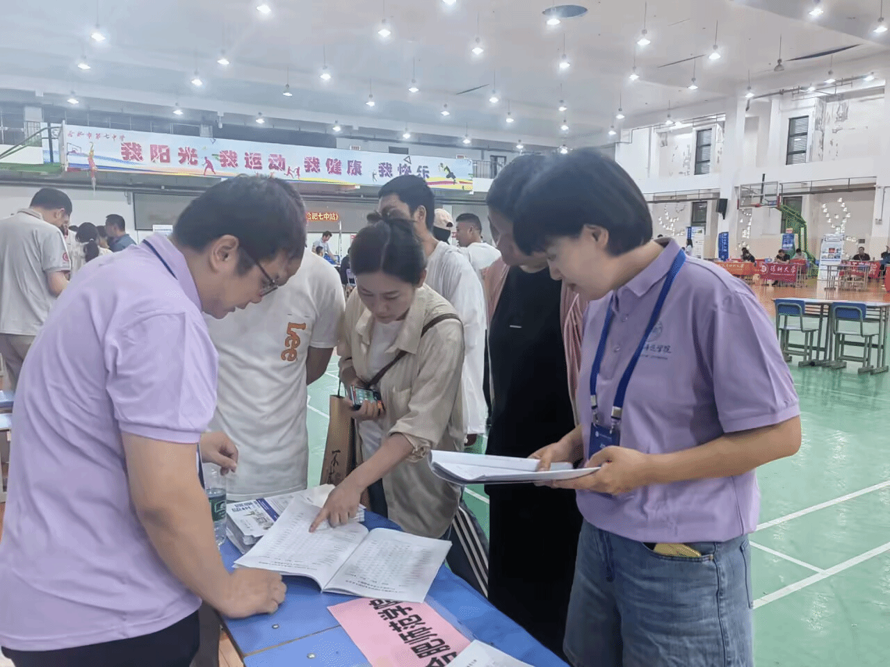 领导领航,骨干聚力。6月27日到6月30日,生物学院组建了一支由院领导、专业负责人、骨干教师组成的招生宣传队伍,分赴合肥七中、寿县一中、肥西实验中学、肥东圣泉中学等重要生源地开展面对面专场宣讲。各招生组通过发放招生宣传册、现场答疑等方式,向考生及家长详细介绍学校办学特色和学院的专业优势、师资特点、培养模式等情况,并就大家关心的学校历年录取分数线和专业组分布等问题进行耐心细致解答。