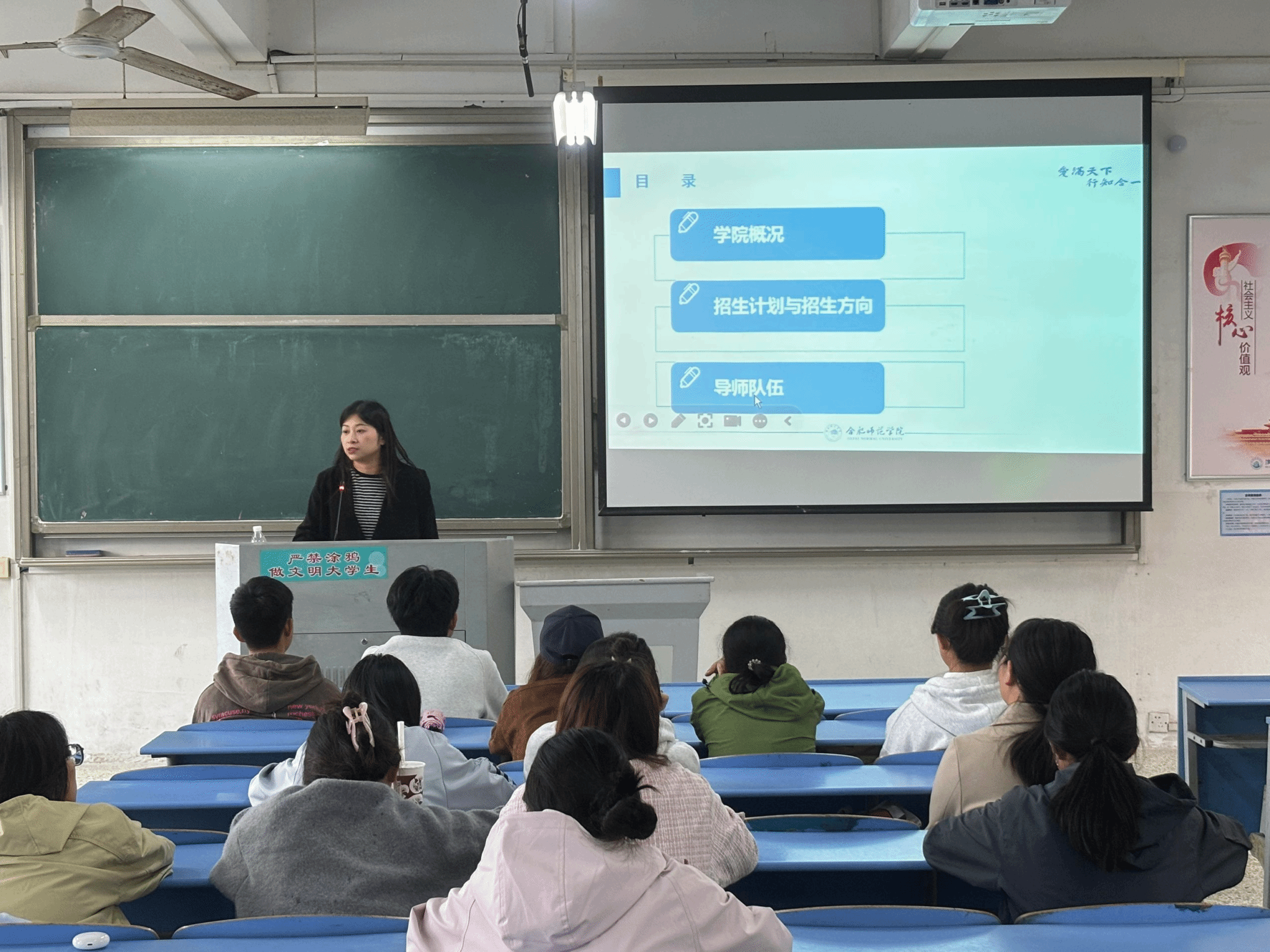 宣讲团首先介绍了学校办学底蕴与优势,并阐述beat365在线唯一官网学科实力及培养条件,然后详细解析了学院2026年硕士研究生招生信息,包含招生方向和专业、考试科目和培养特色等。在随后的互动环节中,三位老师针对“跨专业报考限制”“复试侧重”等问题逐一解答,结合学院竞赛与科研成果,鼓励同学们早定目标、科学备考。